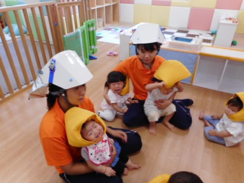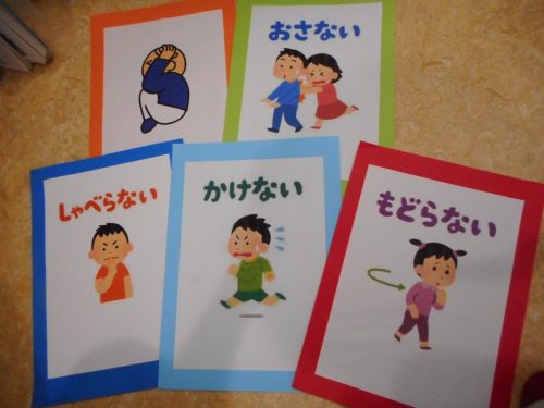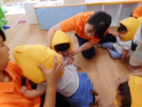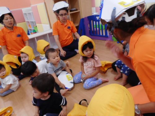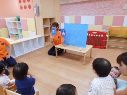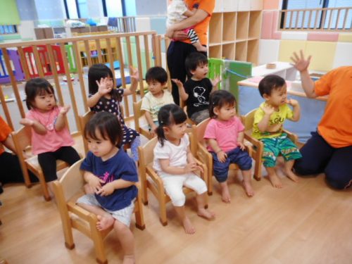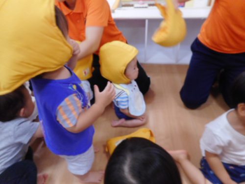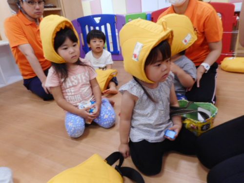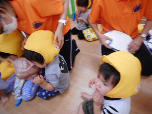 遊んでいた玩具を置いて保育室の真ん中に集まりました。