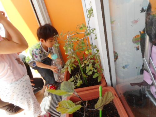小規模保育・津田沼農園のなすとミニトマトは・・・