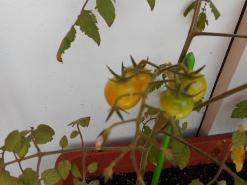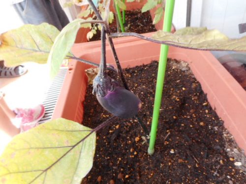 なすは大きくなり、ミニトマトは赤く色づいてきました。