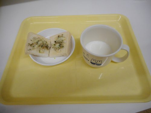 2018-08-06 8月6日(月)の給食&離乳食&おやつメニュー Category:給食ピックアップ 本日の給食メニュー ・ごはん ・鶏のマーマレード焼き ・スパゲッティソテー ・小松菜のおかか和え ・わかめとお麩のみそ汁 本日の離乳食メニュー ・軟飯 ・そぼろ煮 ・小松菜のだし煮 ・みそ汁 本日のおやつメニュー ・じゃこトースト ・牛乳