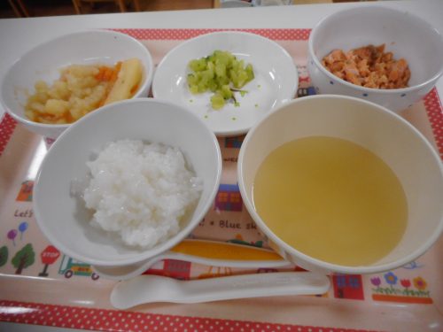 2018-08-07 8月7日(火)の給食&離乳食&おやつメニュー Category:給食ピックアップ 本日の給食メニュー ・ごはん ・鯖の竜田揚げ ・ポテトのマヨネーズ和え ・スティックきゅうり ・たまねぎのみそ汁 本日の離乳食メニュー(中期食) ・おかゆ ・煮魚 ・ゆで野菜 ・みそ汁 本日のおやつメニュー ・焼きそば ・牛乳