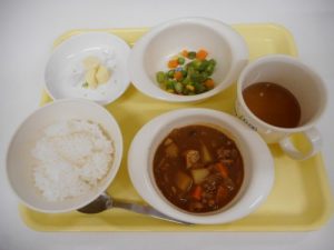 本日の給食メニュー ・ごはん ・チキンのハヤシシチュー ・いんげんのサラダ ・チーズ ...