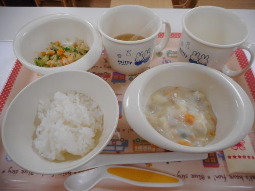 2018.09.03|給食ピックアップ 9月3日(月)の給食&離乳食&おやつメニュー 本日の給食メニュー ・ごはん ・カレーシチュー ・切干大根のサラダ ・チーズ 本日の離乳食メニュー(後期~完了期) ・軟飯 ・シチュー ・野菜サラダ 本日のおやつメニュー ・フルーツヨーグルト ・牛乳 前へ 次へ