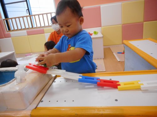 自分の好きな遊びを見つけては集中して遊んでいます。