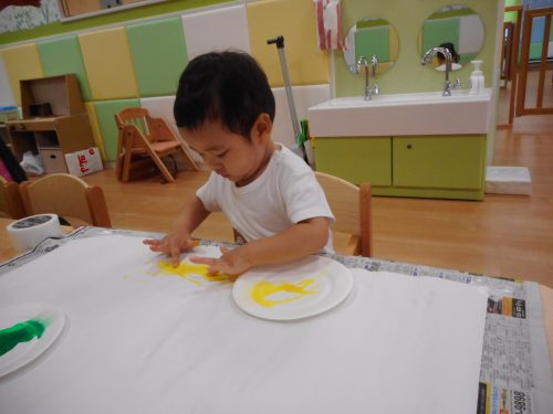 指先に少しだけえのぐをつけて、お絵かきを楽しむ