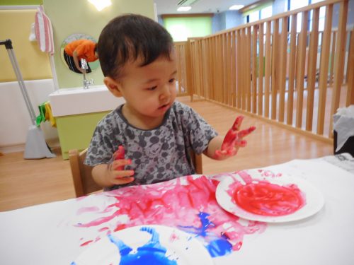 好きな色のえのぐをつけて楽しそう![]()