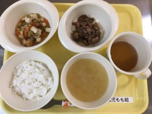 ご飯 味噌汁 豚肉のみそ焼き 五色煮
