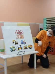 「ハガキやお手紙集める 郵便車🎵」と歌うと