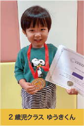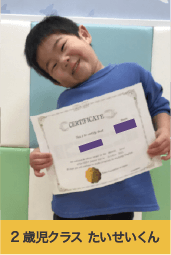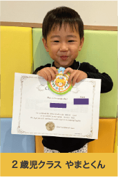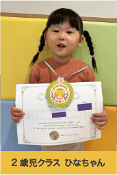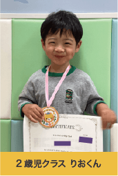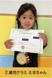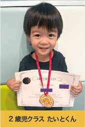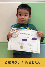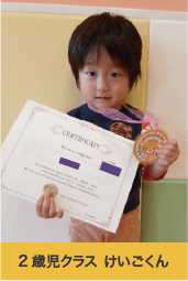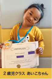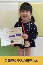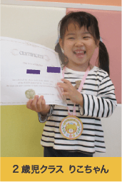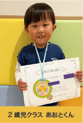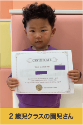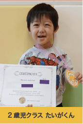 「英検Jr.® BRONZE」は英検Jr.®のなかでは最初のグレードとなりますが、内容は小学校低学年で受験する水準のもので、子ども達が英語を楽しく学びながら異文化への理解や興味が深まることが目的です。内容はリスニングの試験となり、ライティングやリーディングが必要なく、2歳児さんでも受験することができため、希望者のみとなりますが卒園前に受験に挑戦します。受験する2歳児さんにとっては、今まで学んできた英語が途の程度身についているか、現在の英語力を測るよい物差しになると思います。