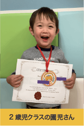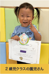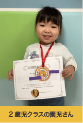 サンライズキッズ保育園では、2歳の卒園前に『英検Jr.® BRONZE』を受験するためのカリキュラムを毎日15分間行っています。