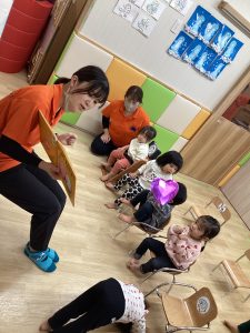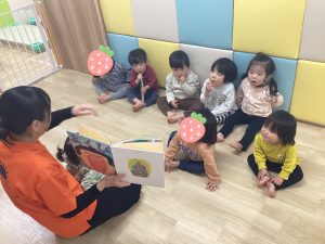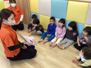 こんにちは😃サンライズキッズ保育園上田園です!りんごぐみのお友だちが真剣に絵本を見ていたの…