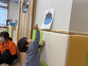 こんにちは😃サンライズキッズ保育園上田園です!いちごぐみ、りんごぐみのお友だち好きな色の絵…