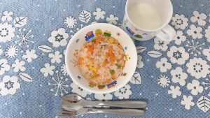 保育士の先生「おかわり食べる人~?」園児さん「は~い!」という元気な会話が聞こえてきました。気温変化に負けず、いっぱい食べてほしいな~♪