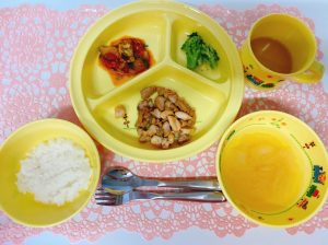雨上がりの暑いときにナスやトマトなどから水分補給をすることはとても大切です。お肉だけでなく、お野菜もいっぱい食べて「ごはんおいしいね!」と言ってくれました♪