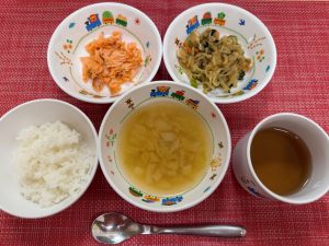 サンライズキッズ保育園 ◎給食の様子◎ 今日の給食は、人気メニューの鮭の塩焼きでした! 進級入園...