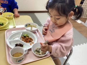 サンライズキッズ保育園◎給食の様子◎ご入園・ご進級おめでとうございます☆新入園児さんは、少し…