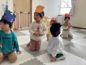 北町園でも、先生から節分の由来をお話してもらいました。鬼が来たら「鬼はー外!って言って豆をぶつけるんだよ!」とみんなに教えてくれたお友達もいました!