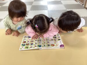 このようにお友達と絵本を見る姿は、私たちもほっこりします🥰