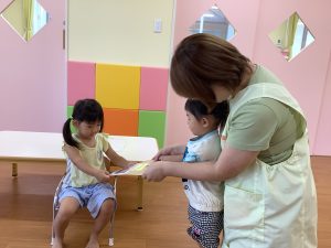 クラスのお友達からバースデーカードを受け取り嬉しそうな様子😊