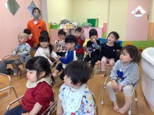 クロ♩ハタ♪などさまざまなリズム運動で歌を歌いながら手拍子手拍子☺️