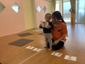 その後は、出てくる絵のカードに合わせて英語をたくさん話しましたよ!今日は、「動物」「色」について勉強しました📖