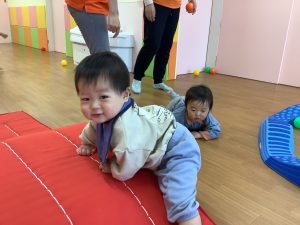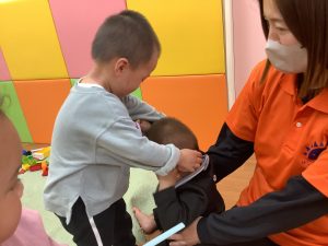 初めての環境で、まだ少しドキドキする表情や涙を浮かべてしまう子もいますが、