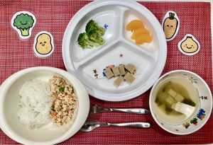 サンライズキッズ保育園 ◎給食の様子 「おいもいっぱい!!」と嬉しそうに給食を食べてく...