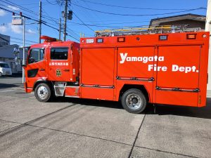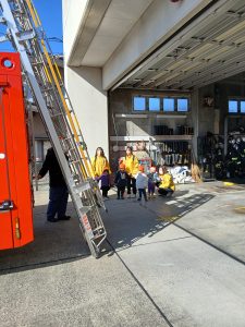 消防士さんにご挨拶をすると早速みんなが見えるところまで消防車を出してくれることに🚒