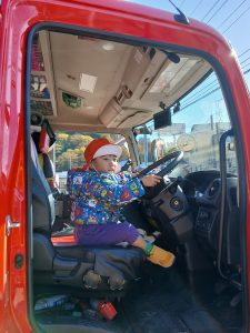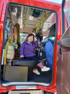 その後は何と消防車の席に実際に乗せてもらえることに!