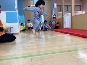 初めは少し怖さがあった子も今ではすっかり自分からロープに近づいてジャンプに挑戦してくれています♪