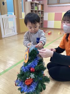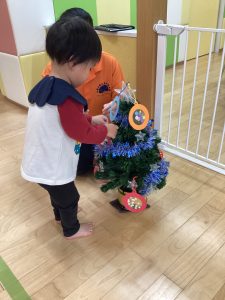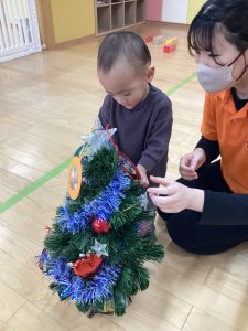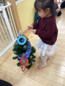 自分の好きなプレゼントを選んで持ってくると、次は事前に作ったオーナメントを飾り付けです🪅