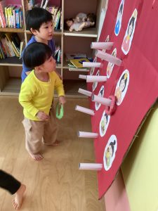次は、ひなまつりの輪投げゲームが始まりました!