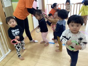 輪っかを見るとみんな“早くやりたい!”とすぐに集まっていました♪
