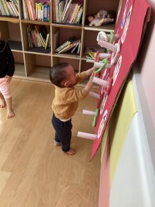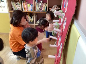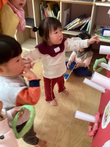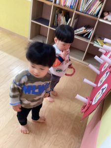 次は、ひなまつりの輪投げゲームが始まりました!