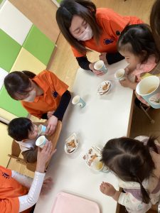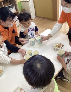 初日はいつもと違った雰囲気でお友だちや先生とジュースで乾杯をしておやつを楽しみましたよ🍪🥤