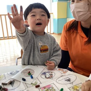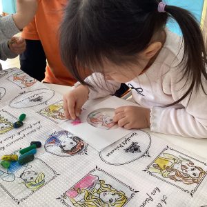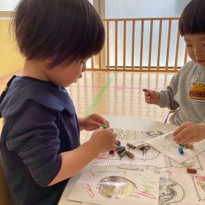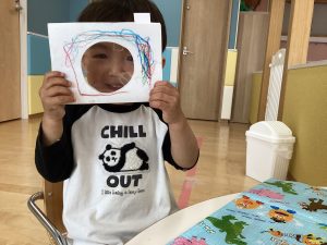 レンズ部分の周りをクレヨンで塗っていきます🖍️