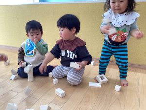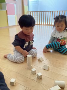 まずは、積み木遊びをしているいちごぐみさん🍓