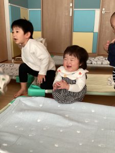 新しいお友だちが来ることを伝えていたので、登園初日から「かわいい〜」と笑顔で近づいていったお姉さん、お兄さんたちがたくさんいましたよ💓