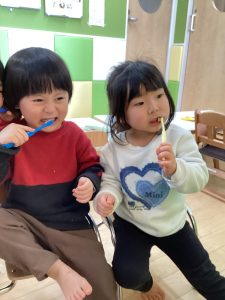 さて、りんご組さんは年明けから歯磨きにも挑戦しています🪥