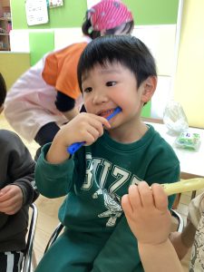 歯磨きが嫌だ、したくないといった様子もなくいつも給食を食べ終わると率先して歯磨きに向かっているんです👏