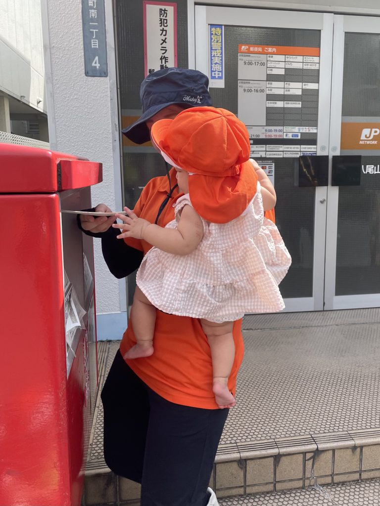 敬老の日に届くよう10日(水)にお散歩で郵便局前のポストにハガキを入れました!その時の様子をお伝えします🥰