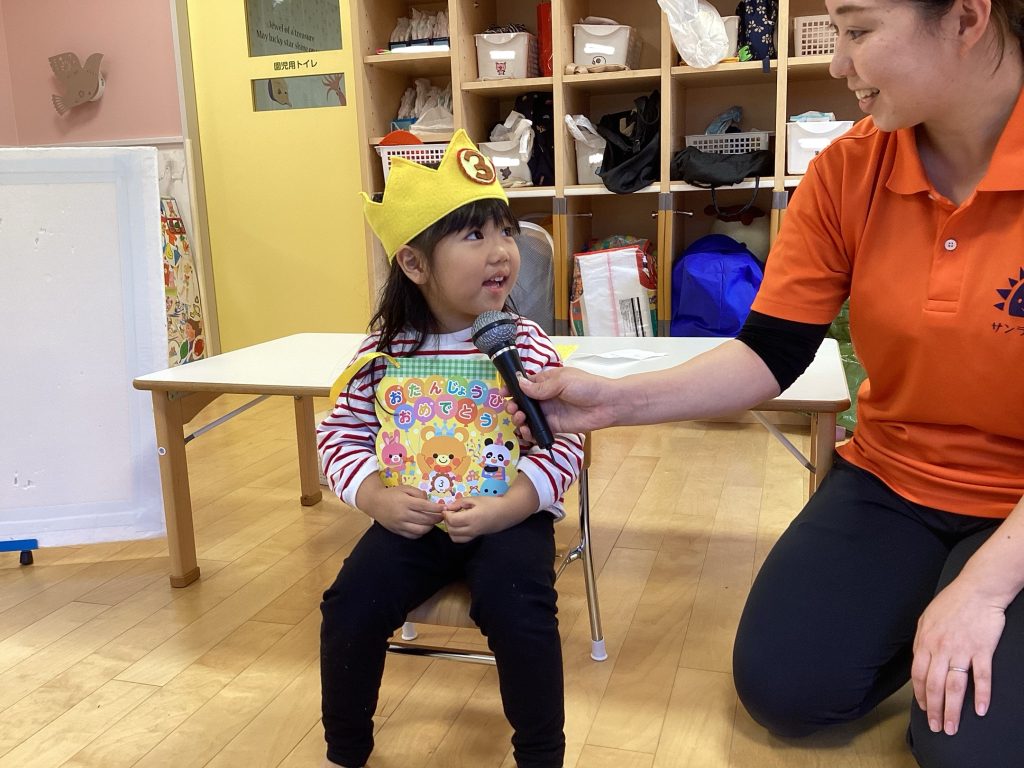 お友だちの前に出てかっこよくインタビューに答えるお友だち!