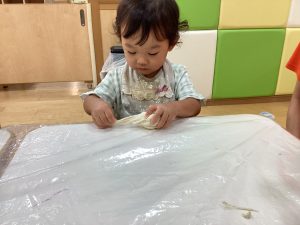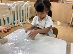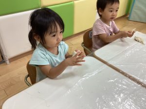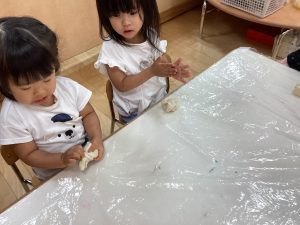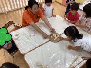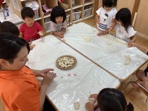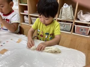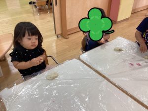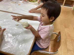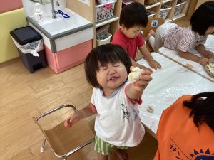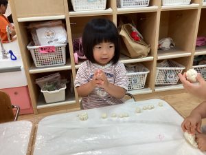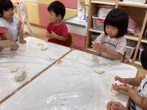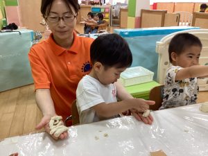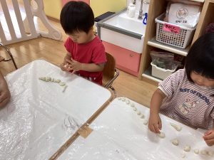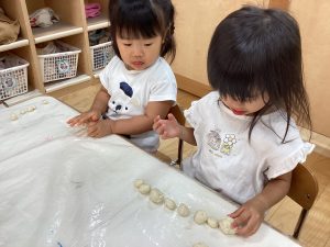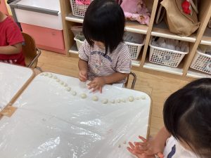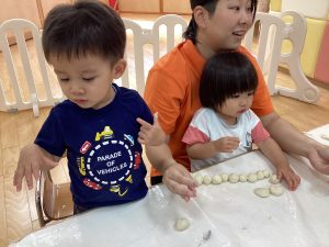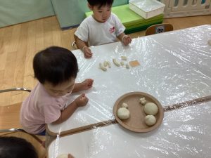 「こねこねー」「まるくー」と楽しそうにこねていました♪