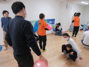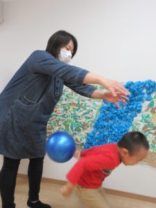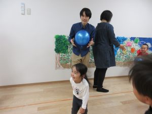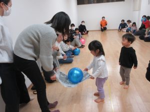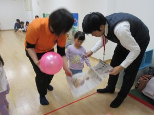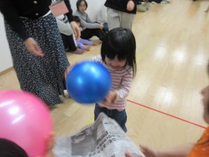 新聞紙やタオルを使ってボールを落とさないように運びました!!