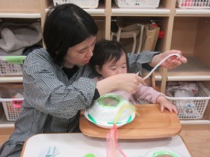あれ??おかあさんとおとうさんだけになってるー(笑)息を合わせて運んでいました♡