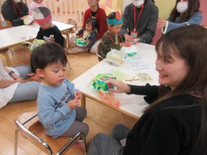 お歌やカスタネットも披露♪お家の人の嬉しそうな表情を見てこちらも嬉しくなりました(#^.^#)