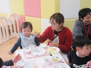 その後は給食試食会でした。普段子どもたちが口にしている味を