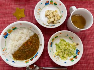 サンライズキッズ保育園 ◎給食の様子 今日は、キーマカレーで園内はカレーのいい匂いでいっぱいになり、...