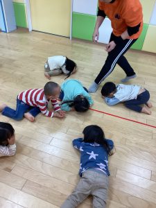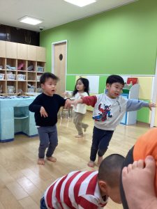 異年齢で行うことで年下児は年上児を真似一緒のように動こうとします!!