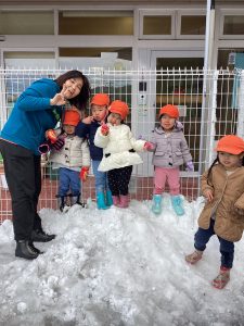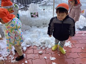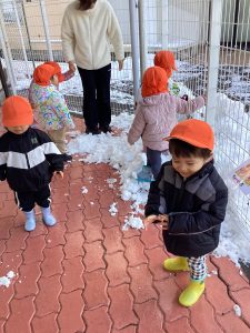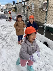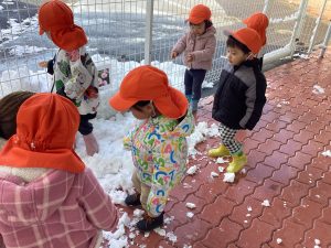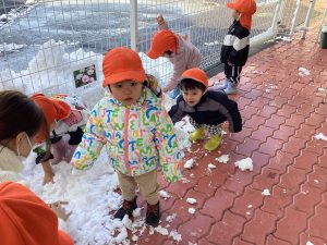 雪合戦をしたり、雪に触れたりして楽しみました💛